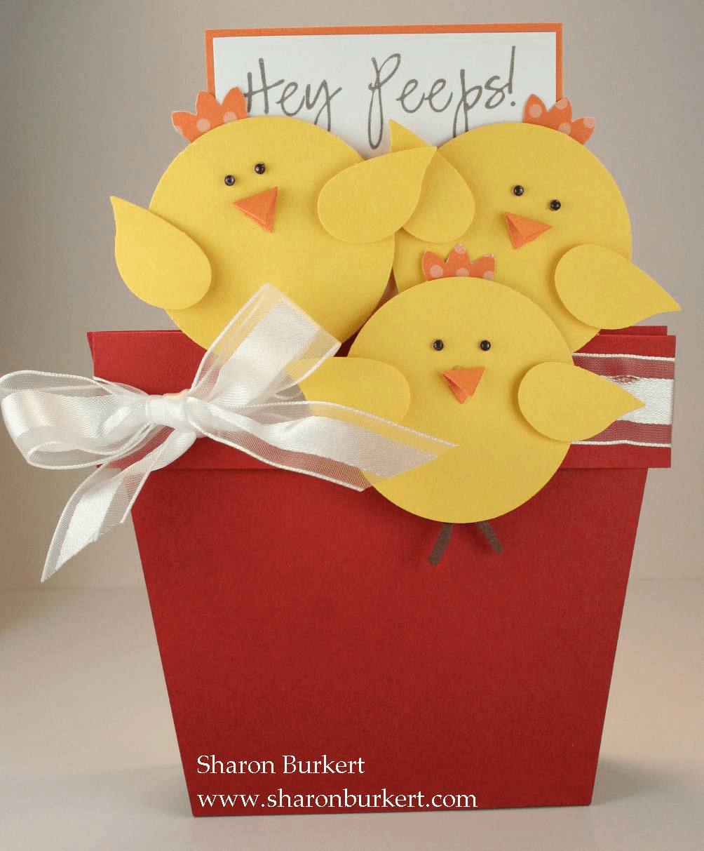 This one’s an oldie but a goodie from Sharon Burkert on her site As the Ink Dries. It comes complete with a paper insert with chicks as the “handle” and a pot that serves as the greeting card’s pocket/holder.