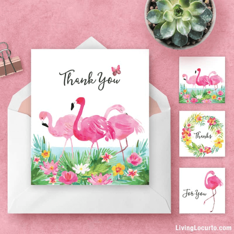 Here’s a tropical-themed thank-you card from Amy Locurto of