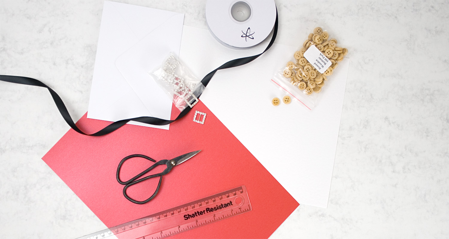 You'll need to make your card blank from the A4 Red pearl card to begin with. This card is great for projects like this as it's single-sided and the white back forms the inside of the card making writing in it easy! I chose to make an A6 card, to do this you'll need to trim the card to A5 (148 x 210 mm) then simply fold/crease and fold in half to create your A6 card blank.