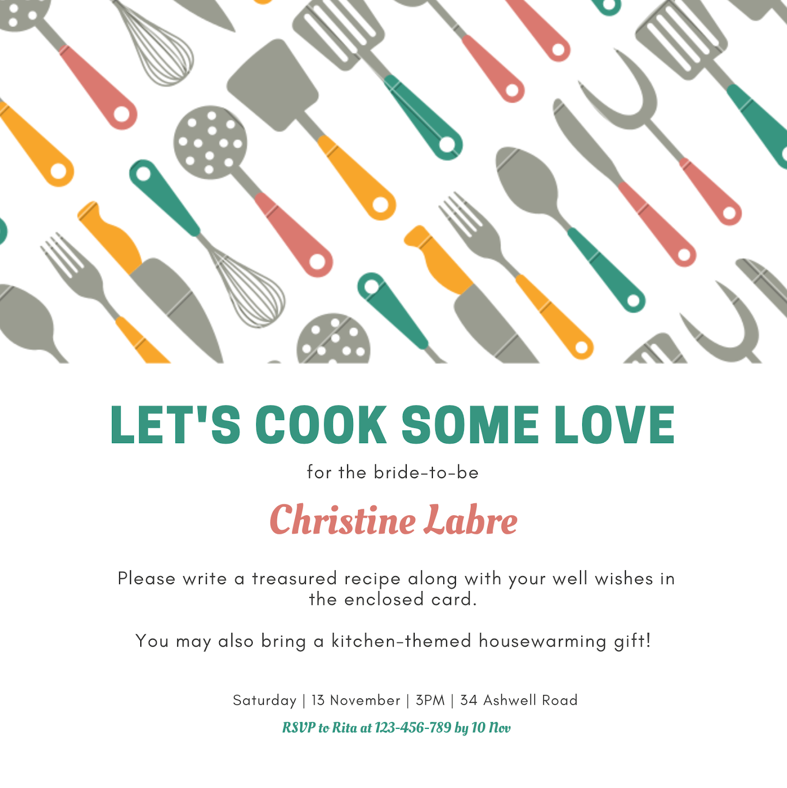 Here’s how you can word an invitation to a cooking or kitchen-themed bridal shower.